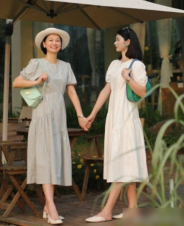 其次看设计:她避开了大花、亮片这些“显老色”,偏爱浅粉、米白、雾霾蓝等柔和色调。