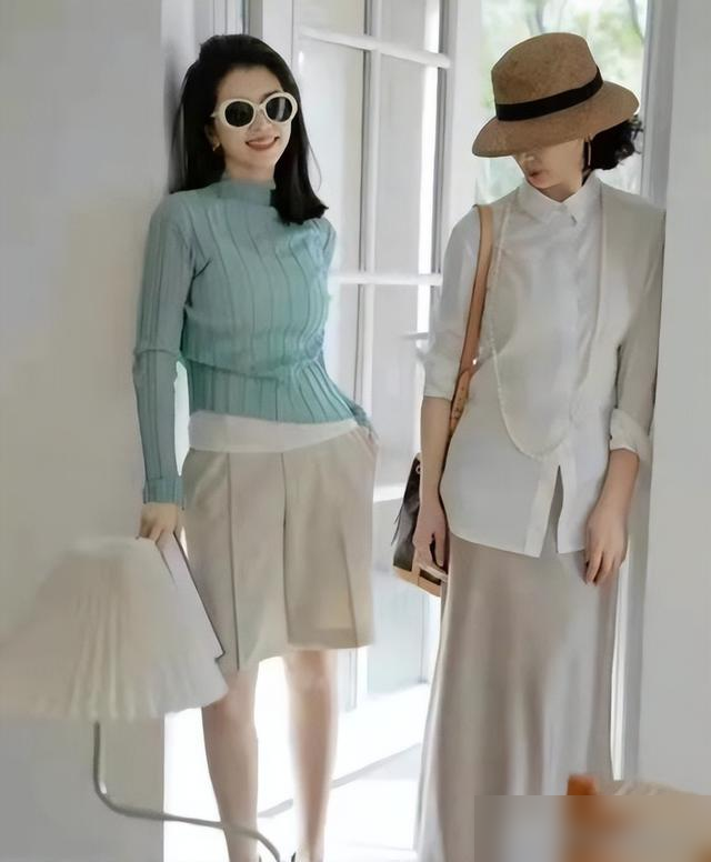 有次她穿米白直筒裙配浅粉针织衫,光腿搭浅口单鞋,评论区全是“这腿也太细了”的惊叹——其实她的腿并不瘦,只是选对了长度和版型,把优势放大了。
